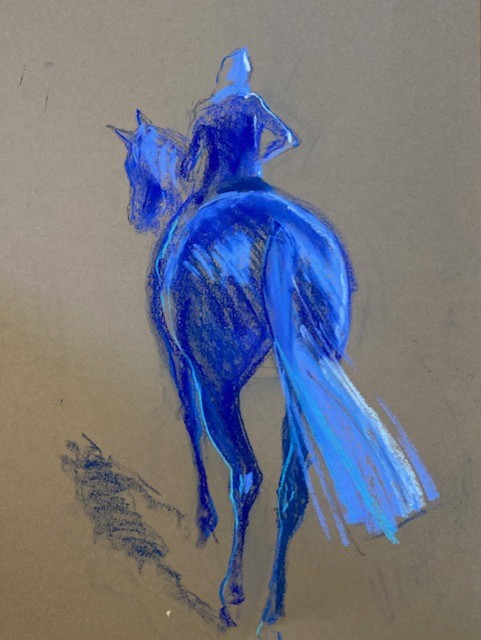 Cavalière et artiste-plasticienne, Simonne L’Hermitte croque les instantanés équestres au polo, les moments surréels des champs de courses, ou les carrés de dressage, ou tout simplement, le cheval, seul, dans la perfection de ses allures et de son modèle. De retour à l’atelier, sur la côte…