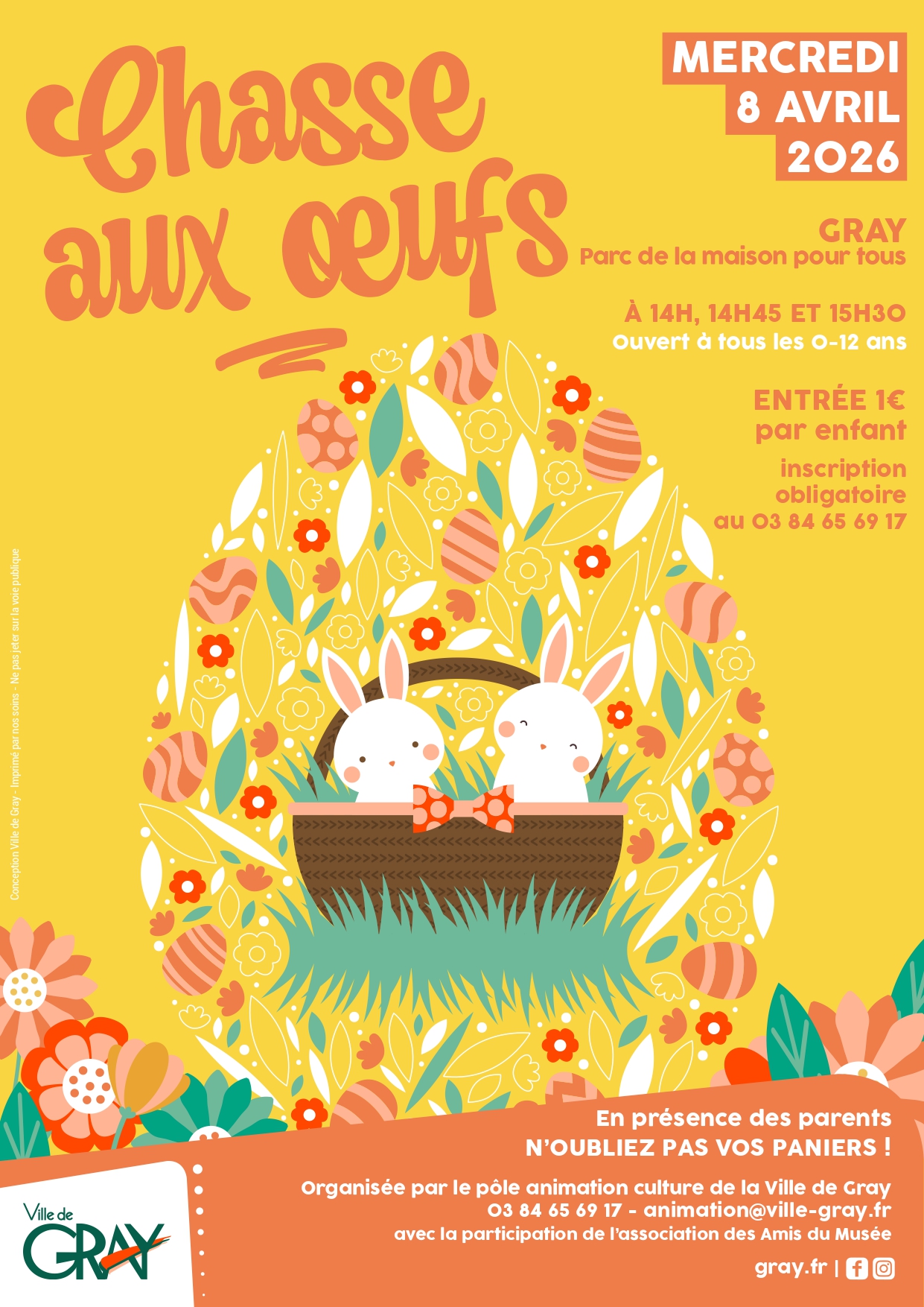 Le pôle animation et culture de la Ville de Gray vous invite à une 𝗴𝗿𝗮𝗻𝗱𝗲 𝗰𝗵𝗮𝘀𝘀𝗲 𝗮𝘂𝘅 œ𝘂𝗳𝘀 ! Pensez à 𝗮𝗽𝗽𝗼𝗿𝘁𝗲𝗿 𝘃𝗼𝘀 𝗽𝗮𝗻𝗶𝗲𝗿𝘀 et profitez d’un 𝗺𝗼𝗺𝗲𝗻𝘁 𝗰𝗼𝗻𝘃𝗶𝘃𝗶𝗮𝗹 avec la participation de l'𝗮𝘀𝘀𝗼𝗰𝗶𝗮𝘁𝗶𝗼𝗻 𝗱𝗲𝘀 𝗔𝗺𝗶𝘀 𝗱𝘂 𝗠𝘂𝘀𝗲́𝗲.