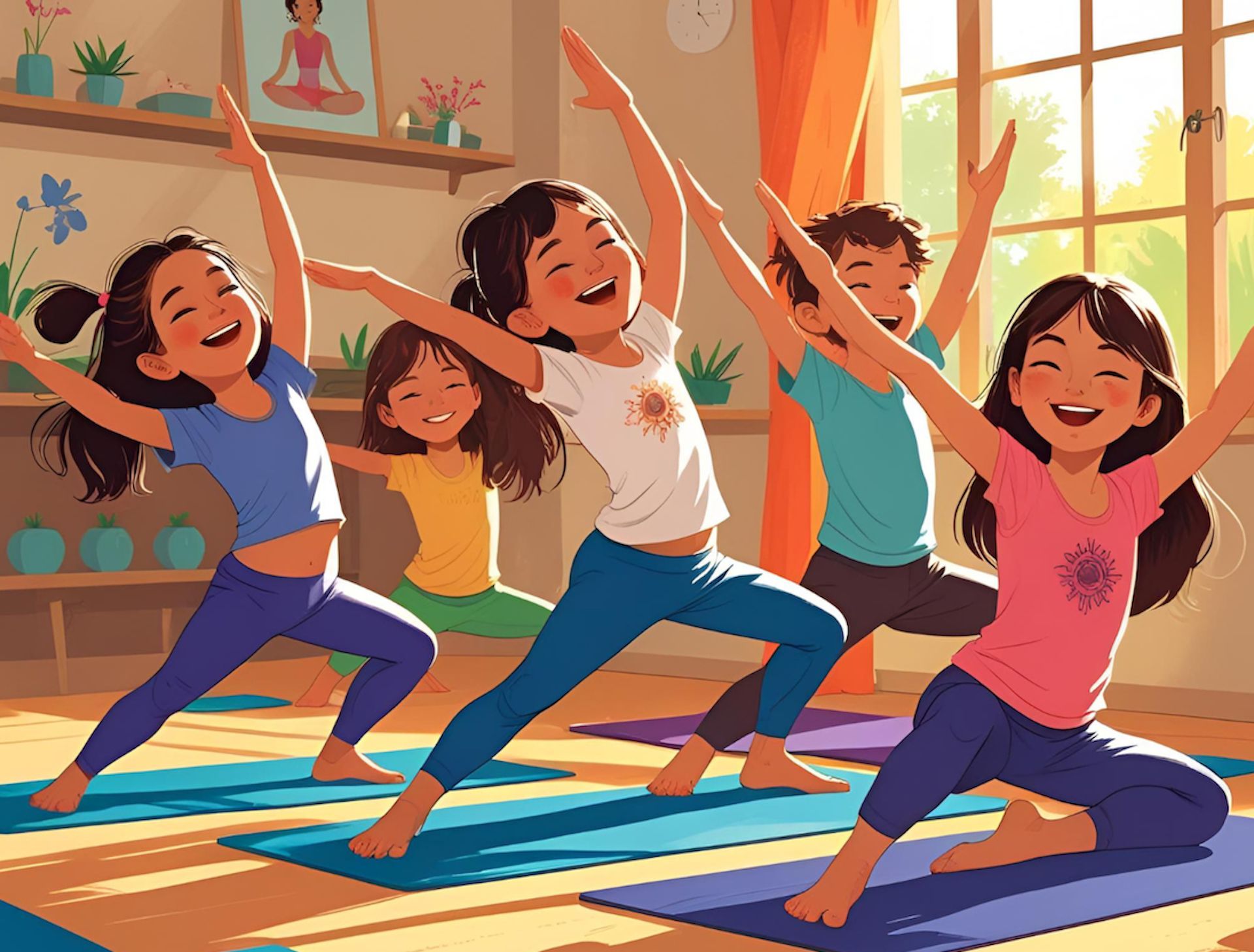 - Une pratique de yoga adaptée aux enfants, mêlant postures, respiration et jeux